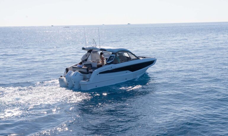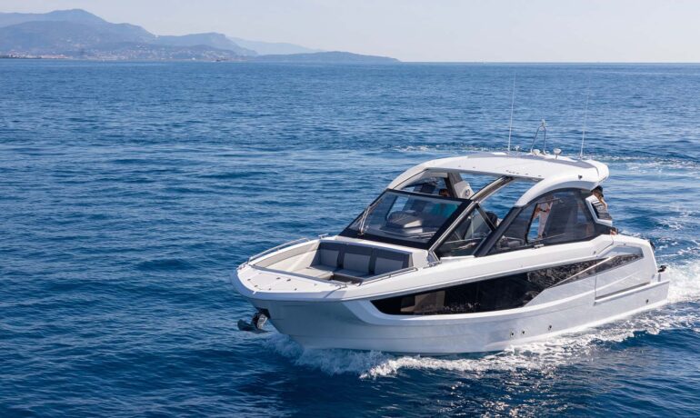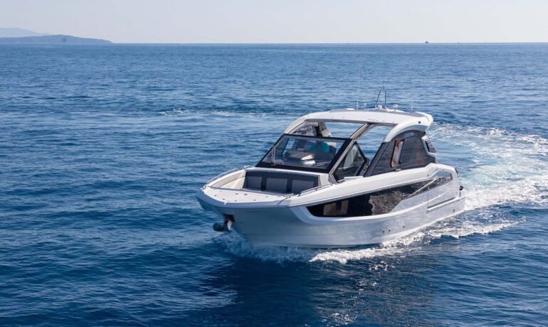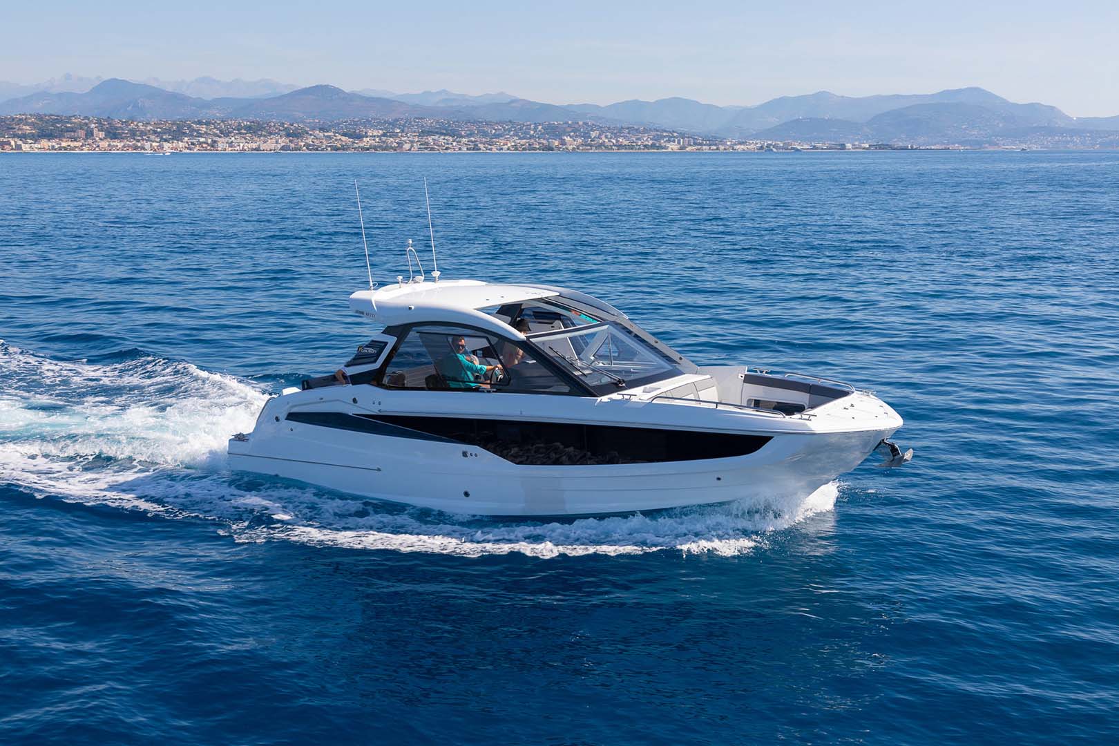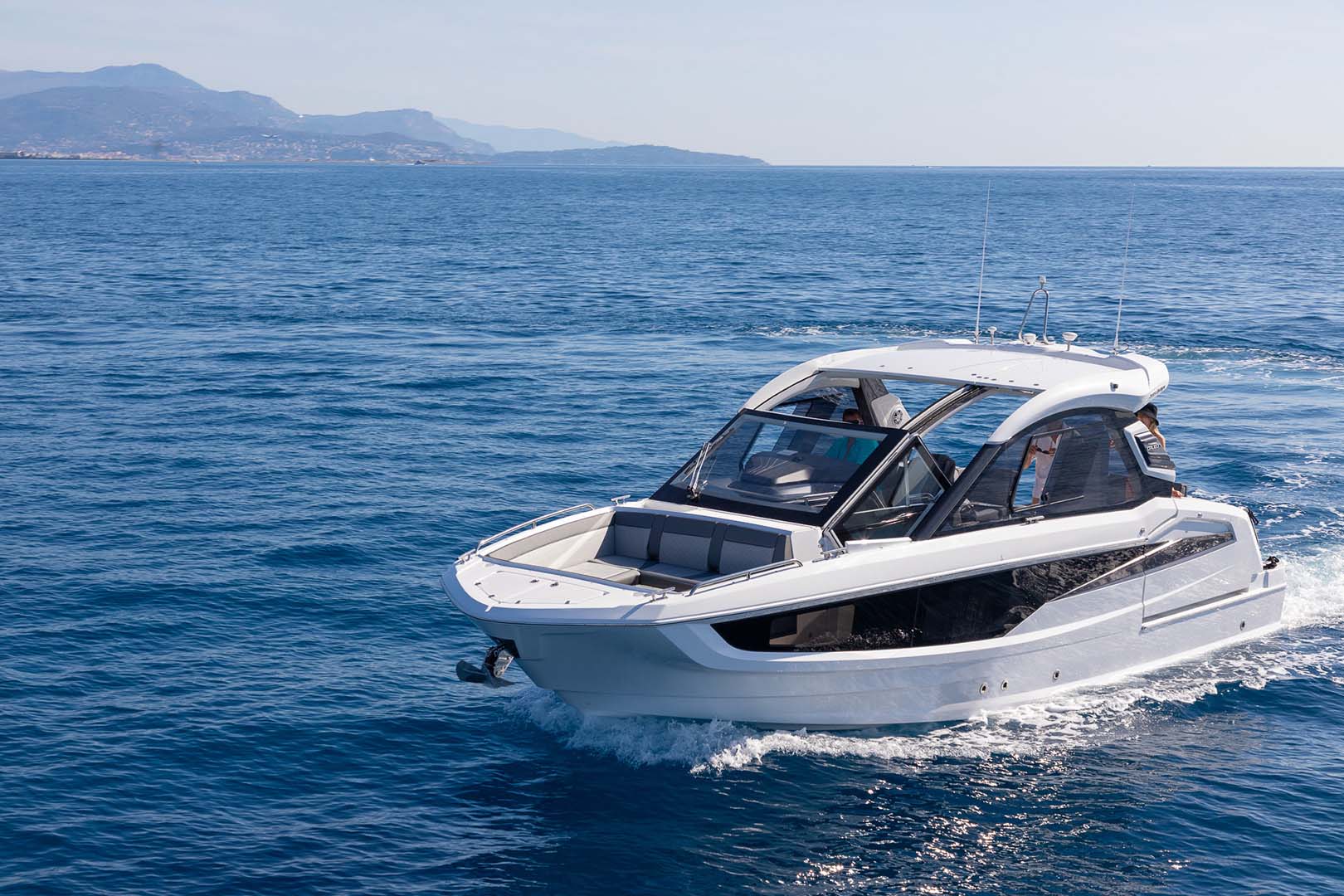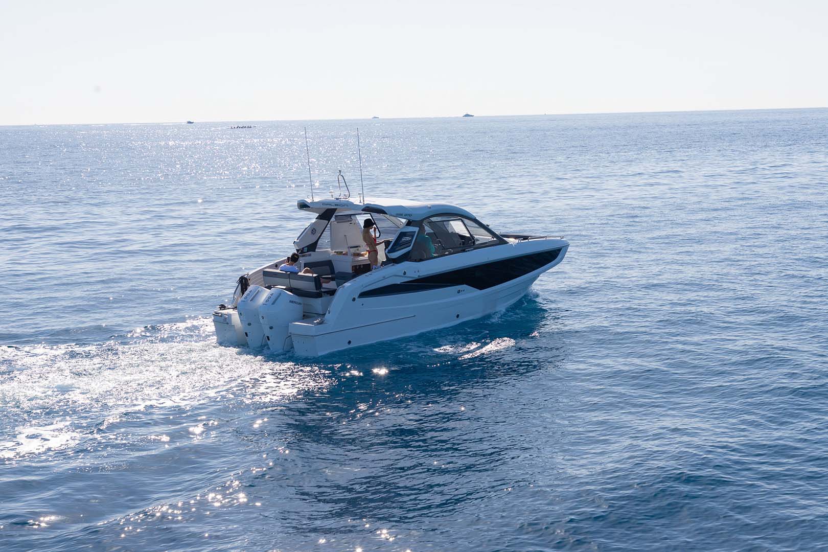 The Galeon 335 GTO redefines the concept of a day cruiser with its sporty character and refined design. Measuring almost 10 meters in length and powered by twin outboard engines, it delivers impressive performance and exhilarating speed for every adventure. The ergonomic cockpit and smart layout create an open space for relaxation and socializing, while the cabins and fully equipped bathroom ensure comfort during overnight stays. Dynamic yet luxurious, the 335 GTO is the perfect choice for short getaways and Mediterranean escapes.