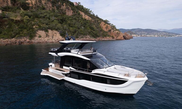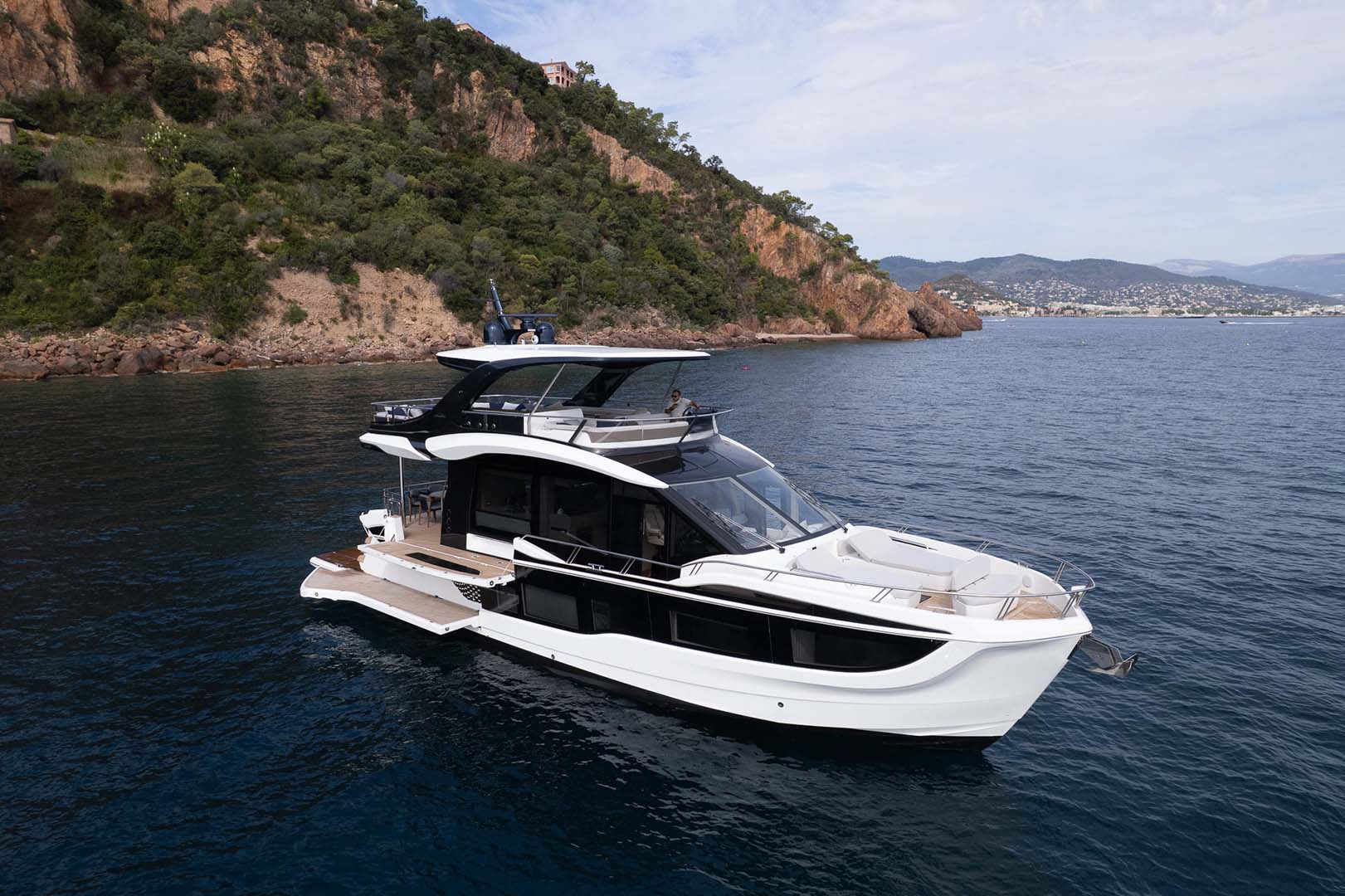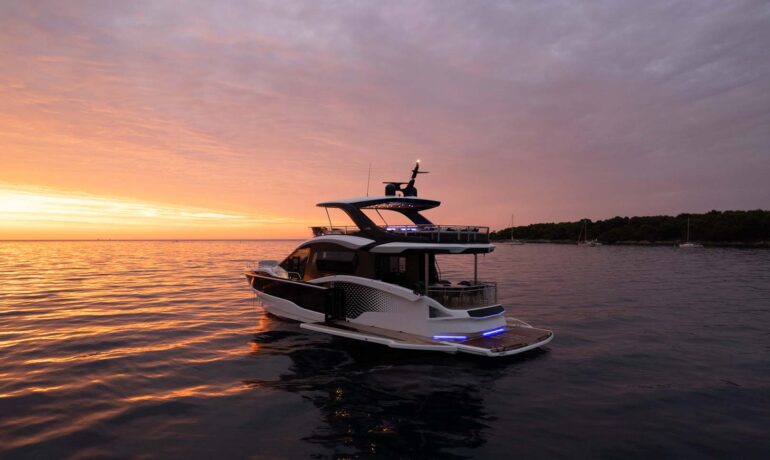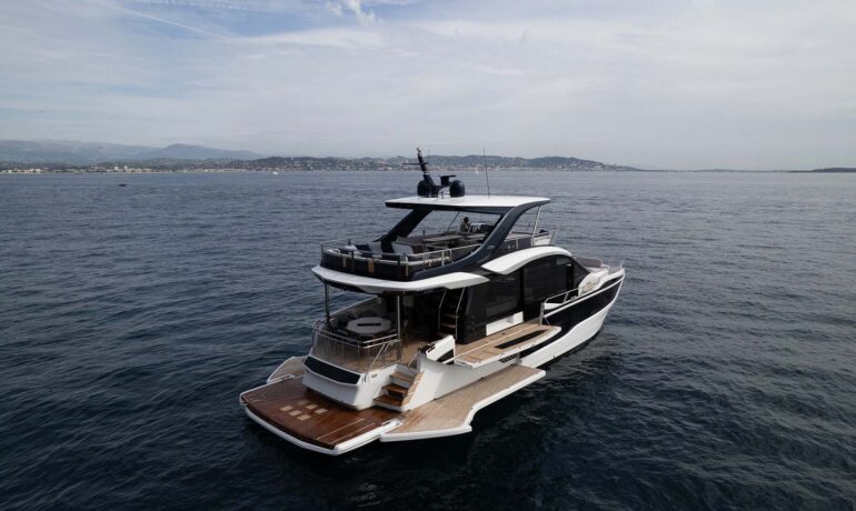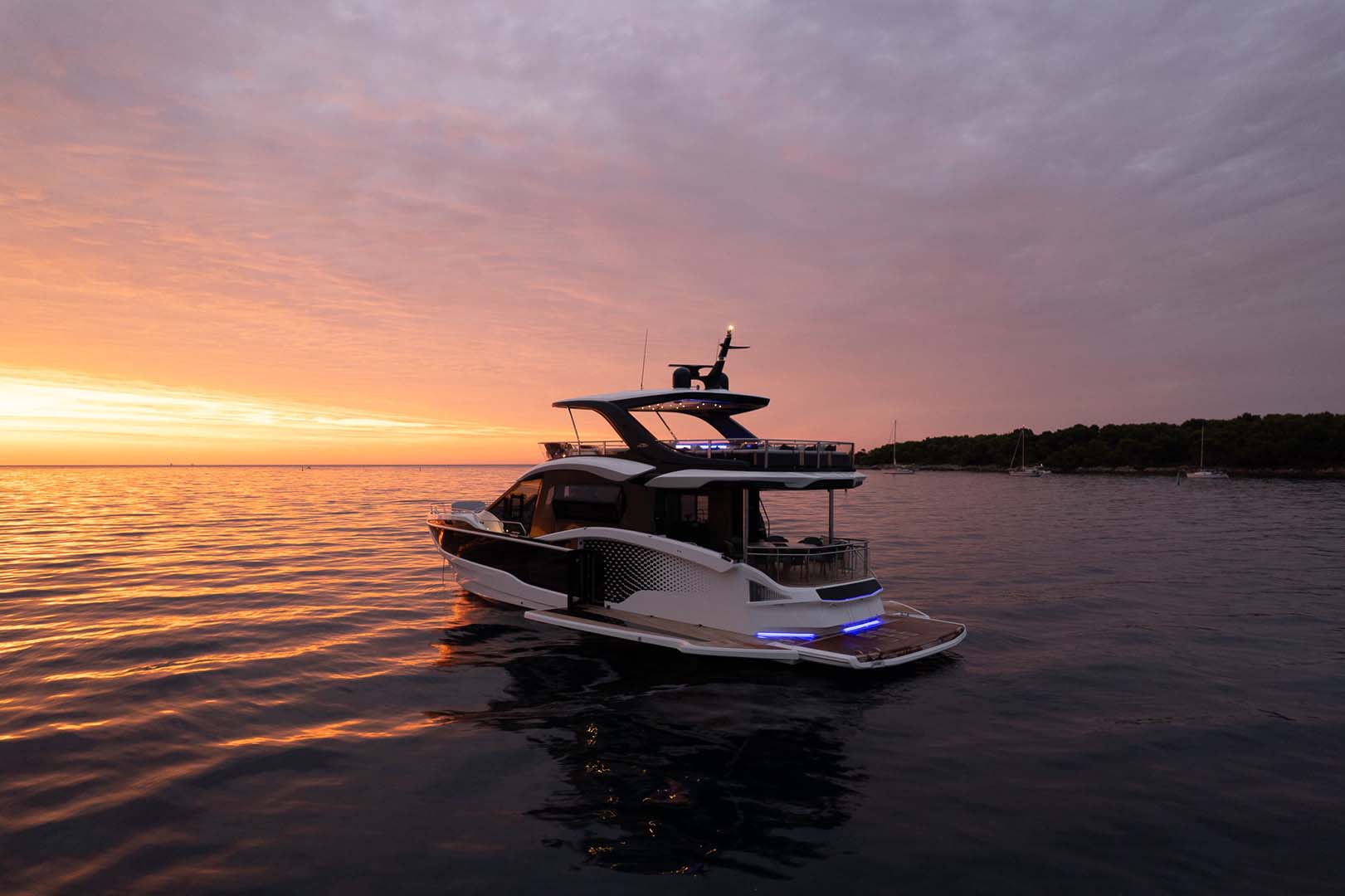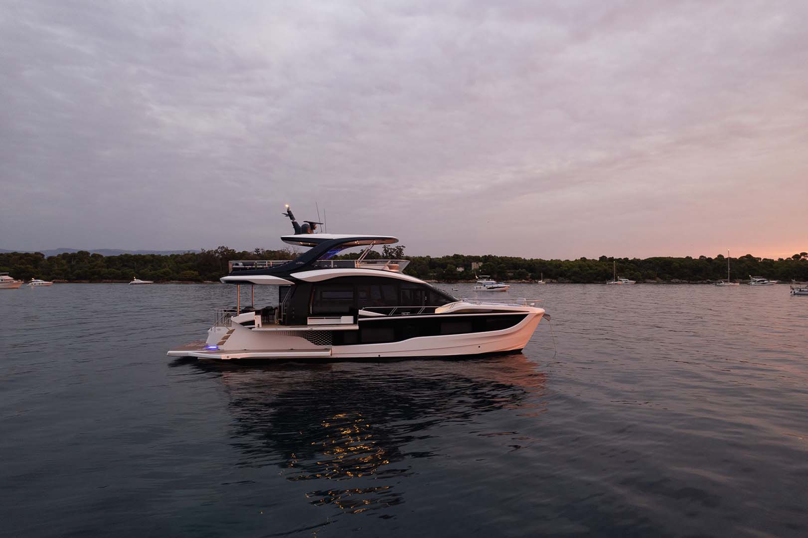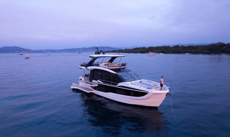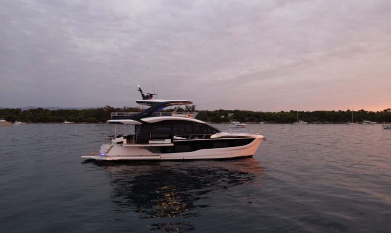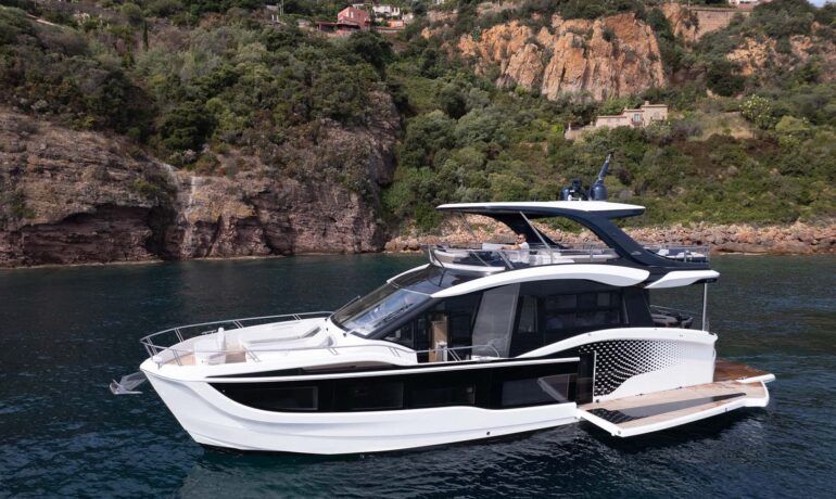 The Galeon 620 FLY is a bold statement in modern yacht design, combining dynamic styling with groundbreaking innovation and spacious comfort. Its asymmetrical main deck maximizes usable space and flow, while Beach Mode balconies and panoramic glazing create an extraordinary connection to the sea. Themaster cabin offers direct private access to the water, enhancing the onboard experience. As the first Galeon to collaborate with 3G Acoustics Studio, the 620 FLY delivers immersive, high-fidelity sound without visible speakers – achieving audio perfection without compromising design. With a luxurious, customizable interior crafted by a top design studio, this flagship redefines what’s possible in the 60-foot class. 620 FLY has been awarded the BEST INNOVATION AWARD at Cannes Yachting Festival 2025!
