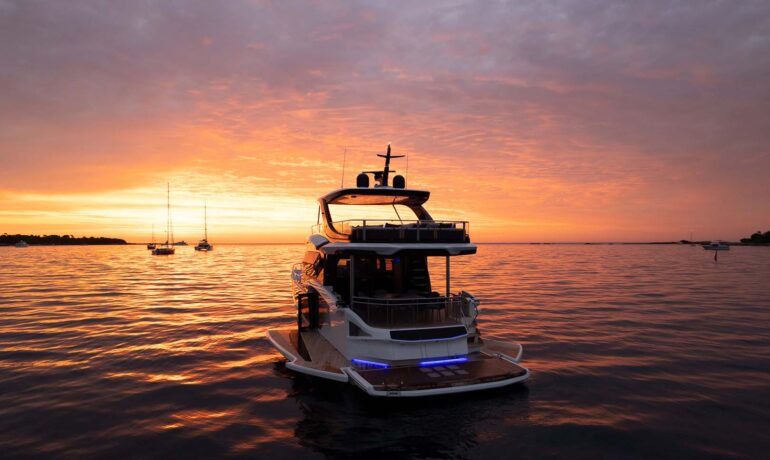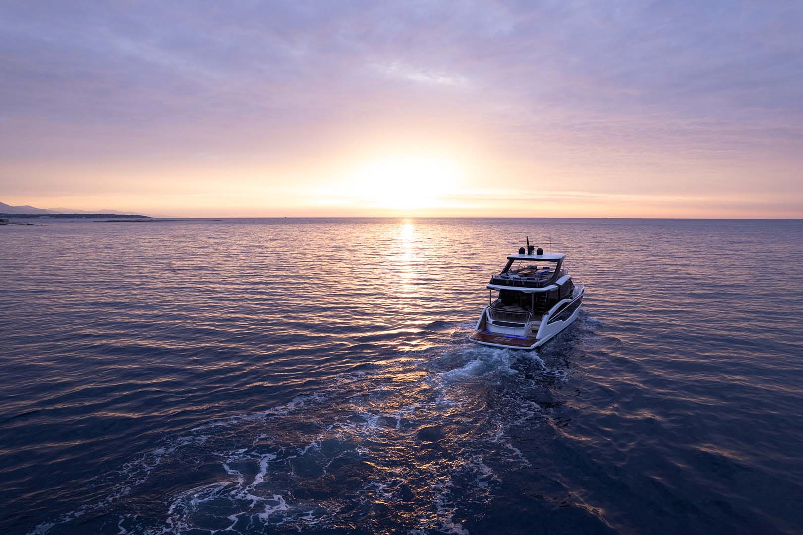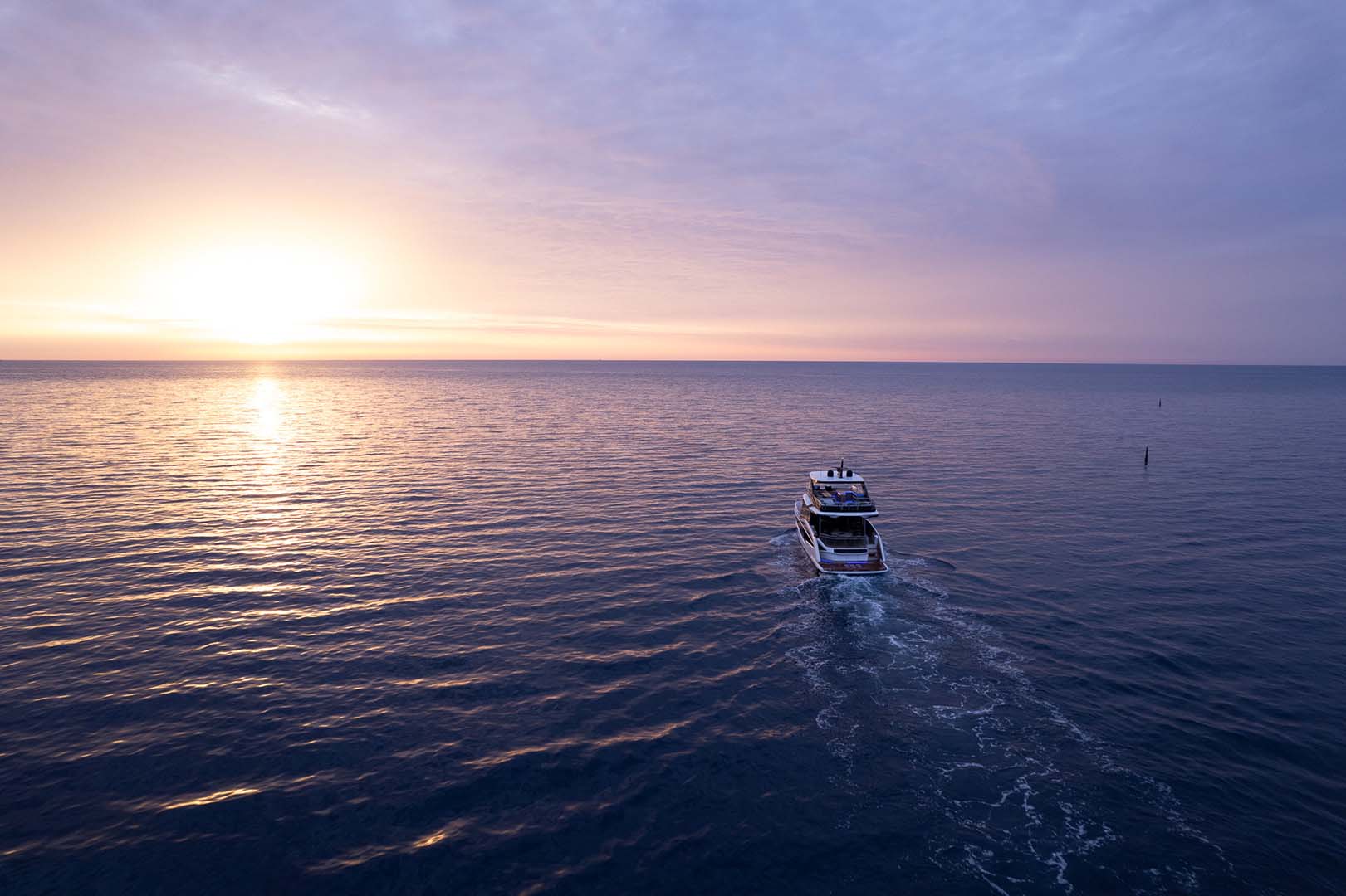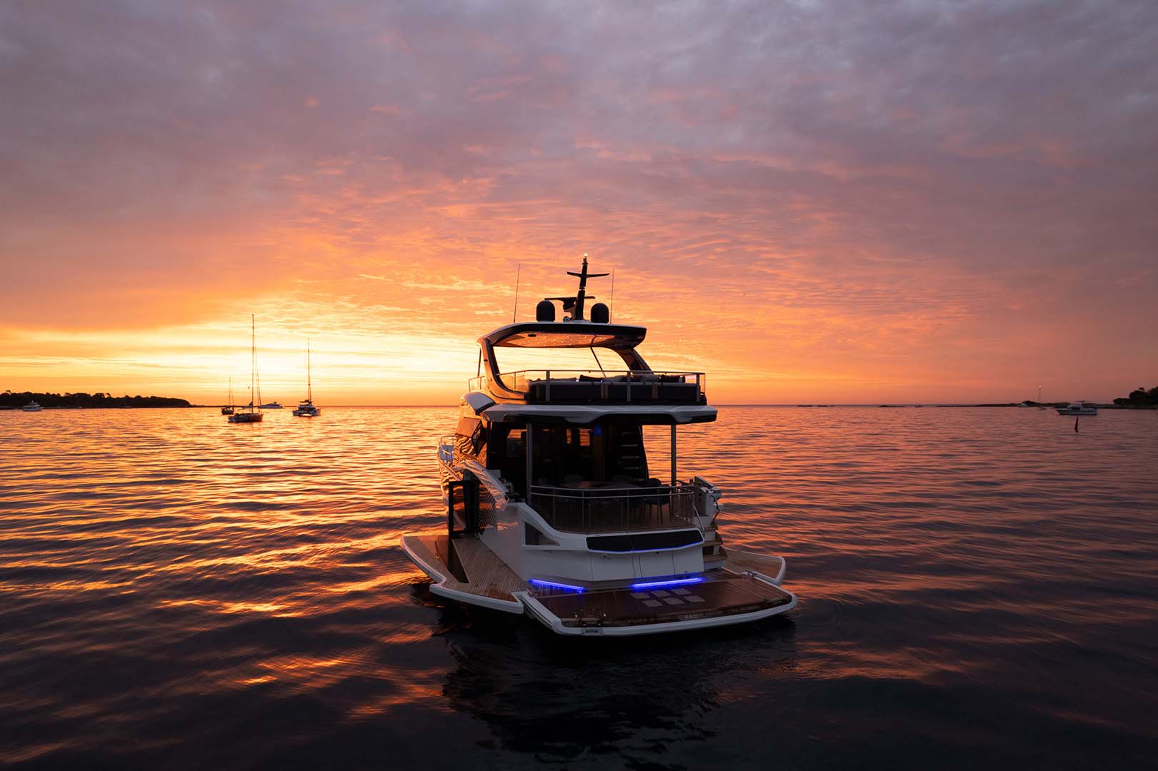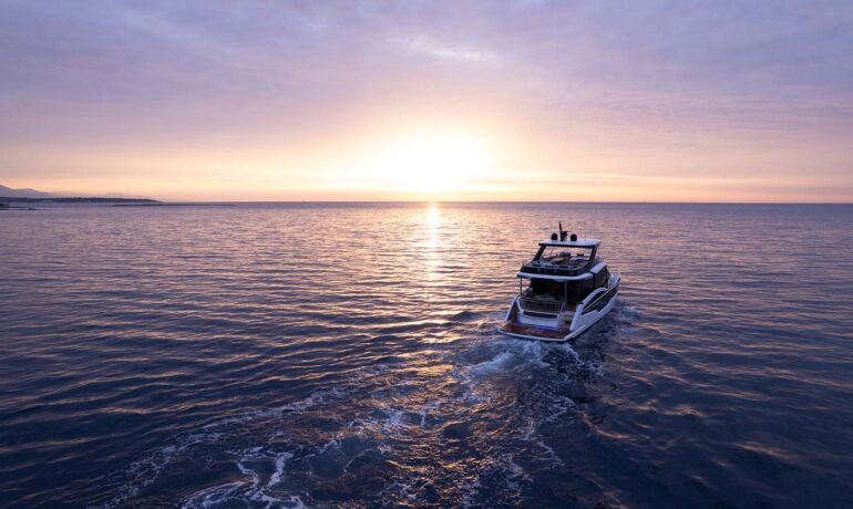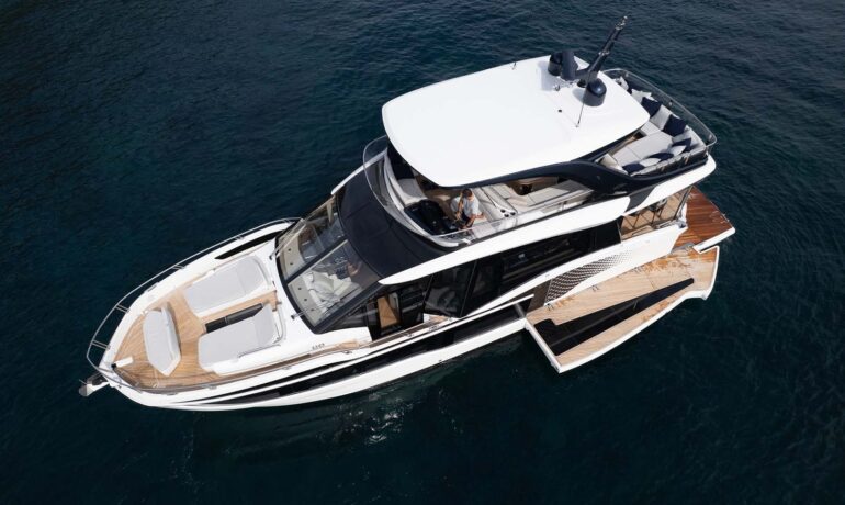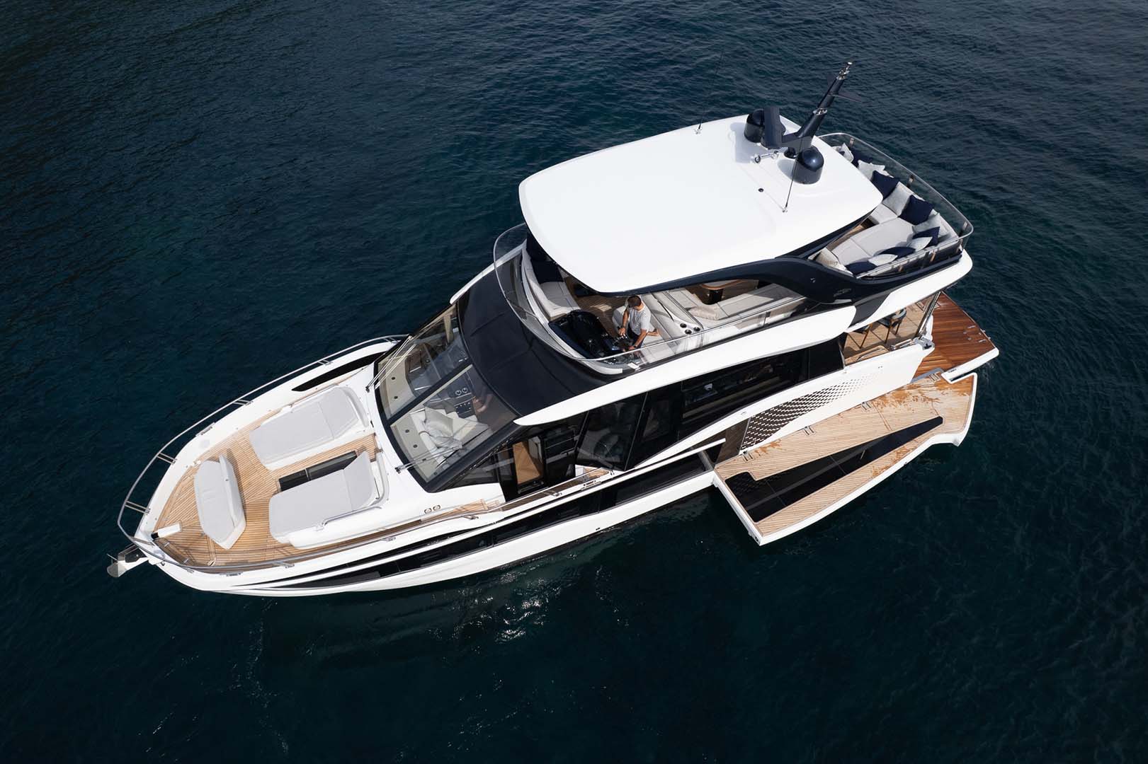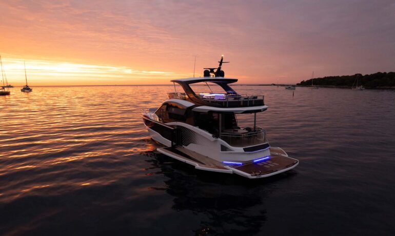 The Galeon 620 FLY is a bold statement in modern yacht design, combining dynamic styling with groundbreaking innovation and spacious comfort. Its asymmetrical main deck maximizes usable space and flow, while Beach Mode balconies and panoramic glazing create an extraordinary connection to the sea. Themaster cabin offers direct private access to the water, enhancing the onboard experience. As the first Galeon to collaborate with 3G Acoustics Studio, the 620 FLY delivers immersive, high-fidelity sound without visible speakers – achieving audio perfection without compromising design. With a luxurious, customizable interior crafted by a top design studio, this flagship redefines what’s possible in the 60-foot class. 620 FLY has been awarded the BEST INNOVATION AWARD at Cannes Yachting Festival 2025!